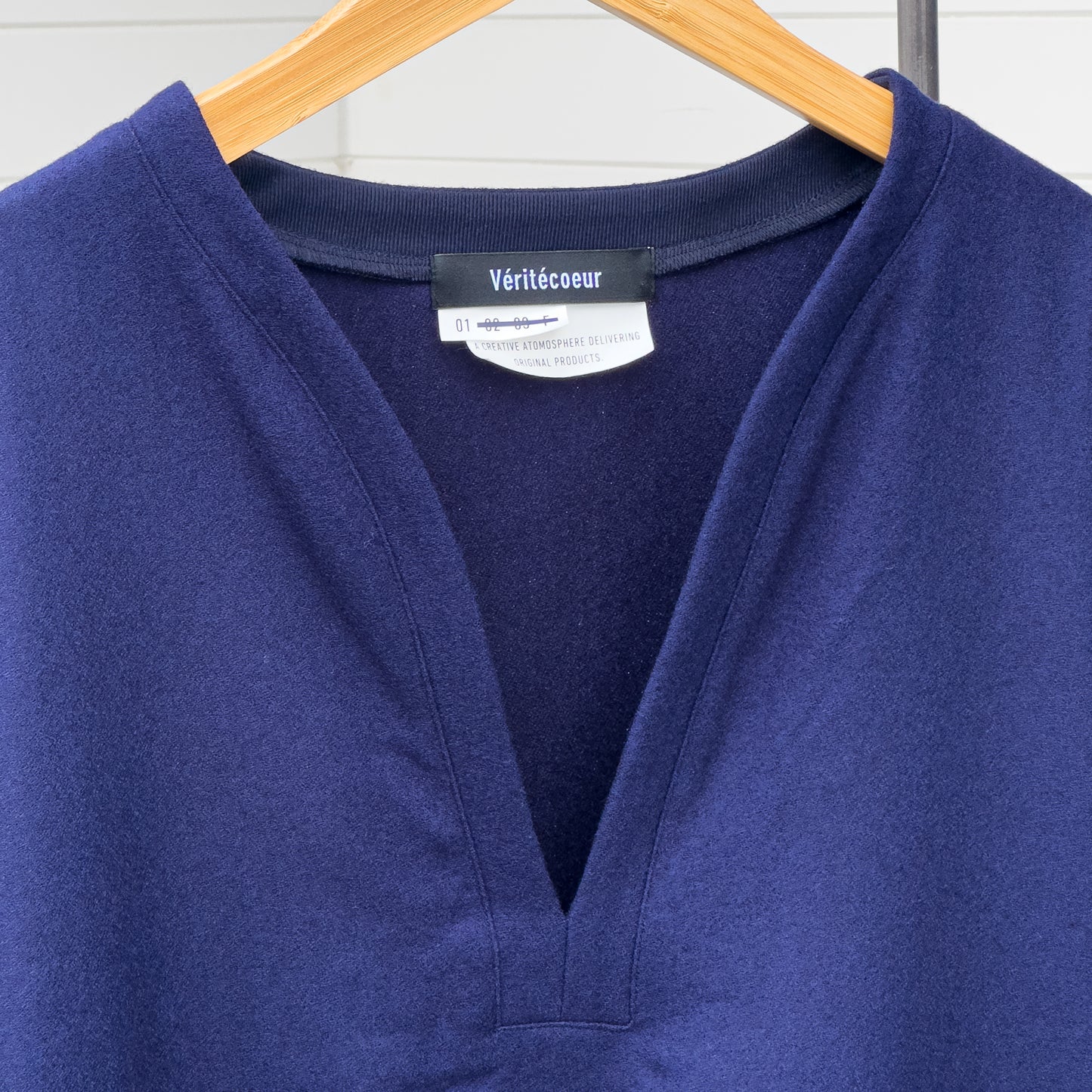 ウールのバックサテンジョーゼットを使用したリブワンピースです。胸元には深いVネックを採用し、様々なトップスとのレイヤードがたのしめるバランスでコーディネートを楽しめます。裾にサイドスリットが入っています。インナーパンツやスカートをコーディネートするのがおすすめです!