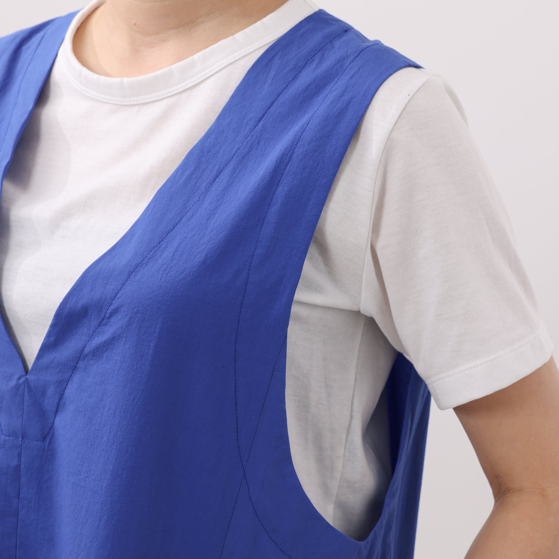 Vネックは着こなしに合わせやすく、前後にタックを施し、ゆとりのあるサイズ感ですが着用してみるとすっきりした縦ラインを楽しんでいただけます。