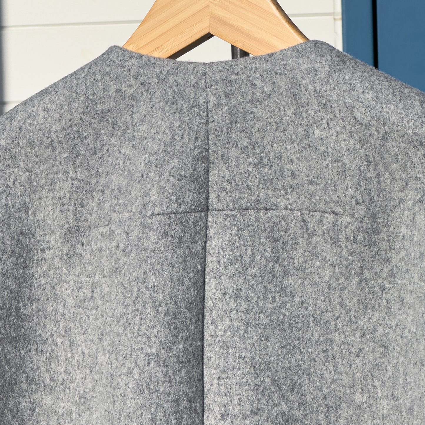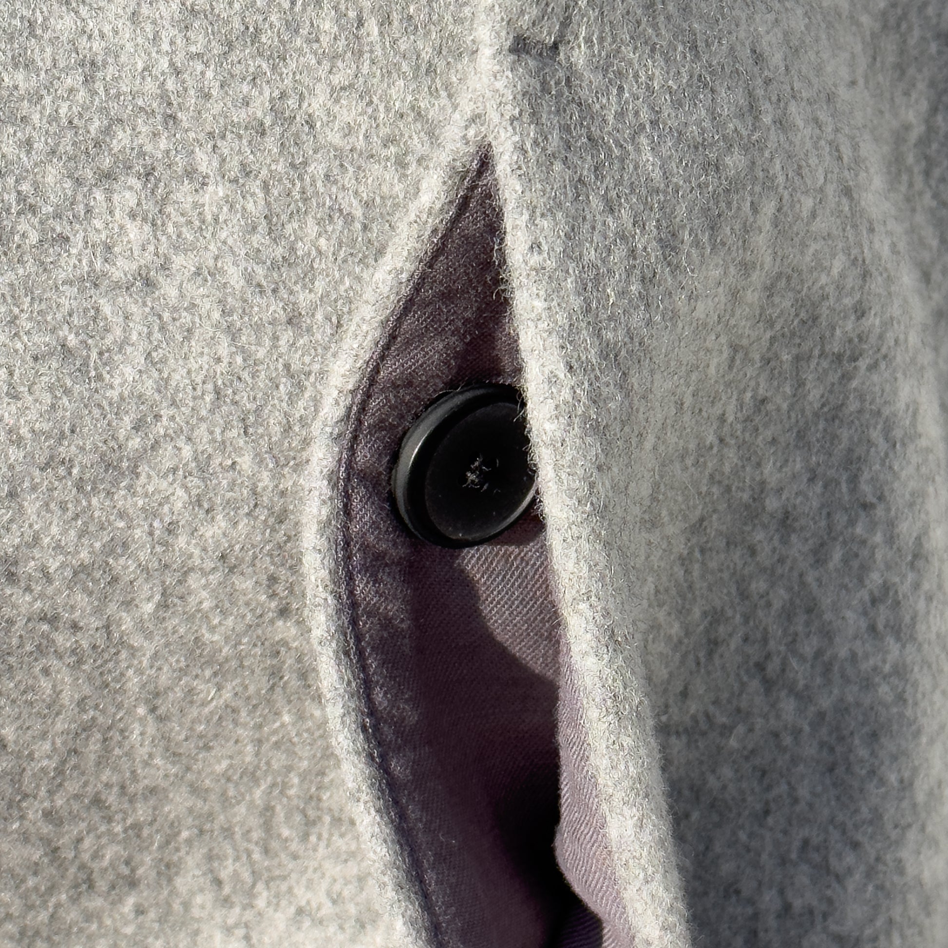 滑らかな手触りのウール100%ショートビーバー生地を使用したブルゾンです。すっきりしたノーカーにサイドは丸みを出したシルエットが特徴です。見た目より軽い着心地も魅力。ノーコントロールの印、背中の切り替えもしっかり入っています!フロントのボタンは比翼仕立てで、肩の位置は大きく落とし絶妙な落ち感のあるドロップショルダーです。ユニセックスデザインらしく、身幅をたっぷりと取ったオーバーサイズなシルエット。サイドにはポケットもあります。