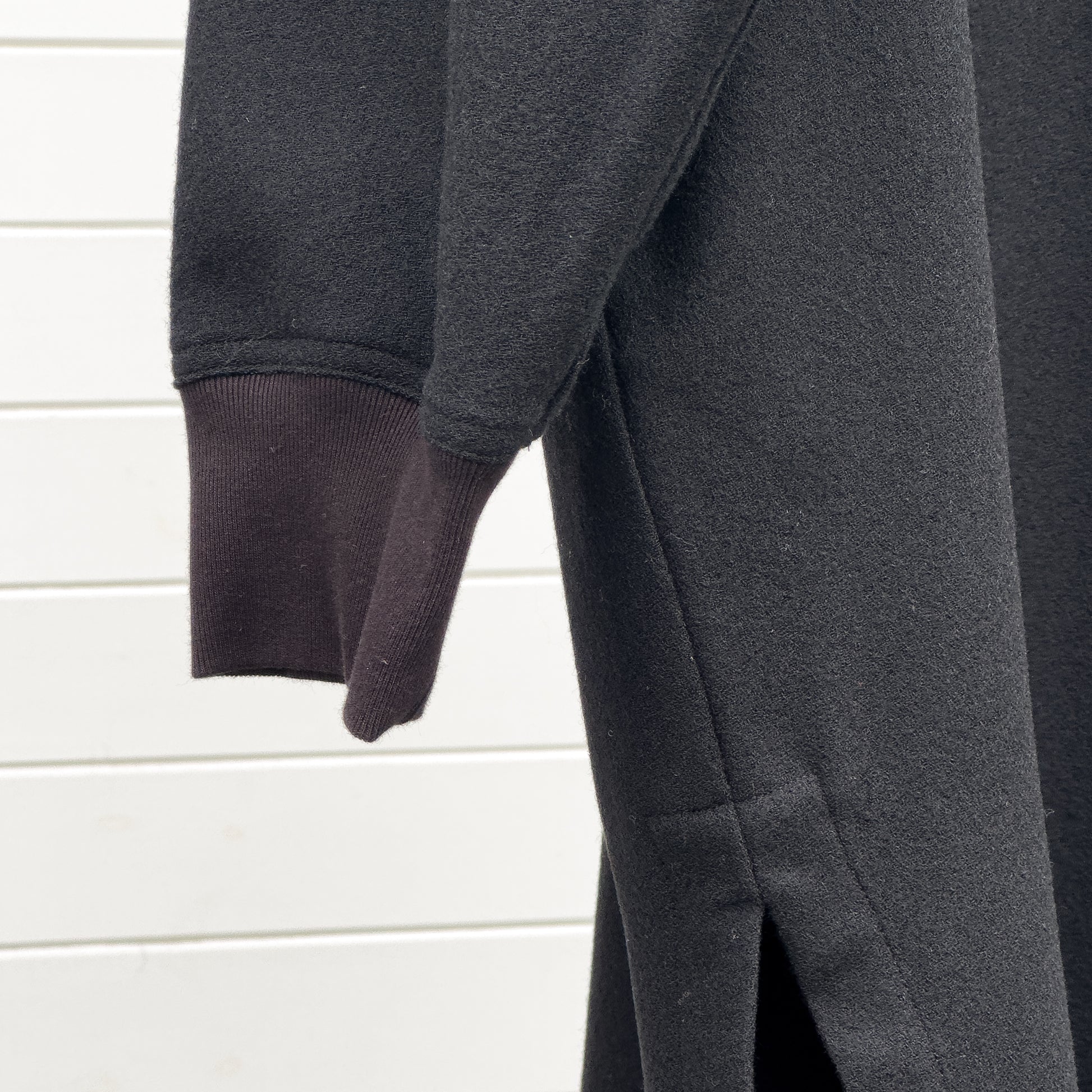 ウールのバックサテンジョーゼットを使用したリブワンピースです。胸元には深いVネックを採用し、様々なトップスとのレイヤードがたのしめるバランスでコーディネートを楽しめます。裾にサイドスリットが入っています。インナーパンツやスカートをコーディネートするのがおすすめです!
