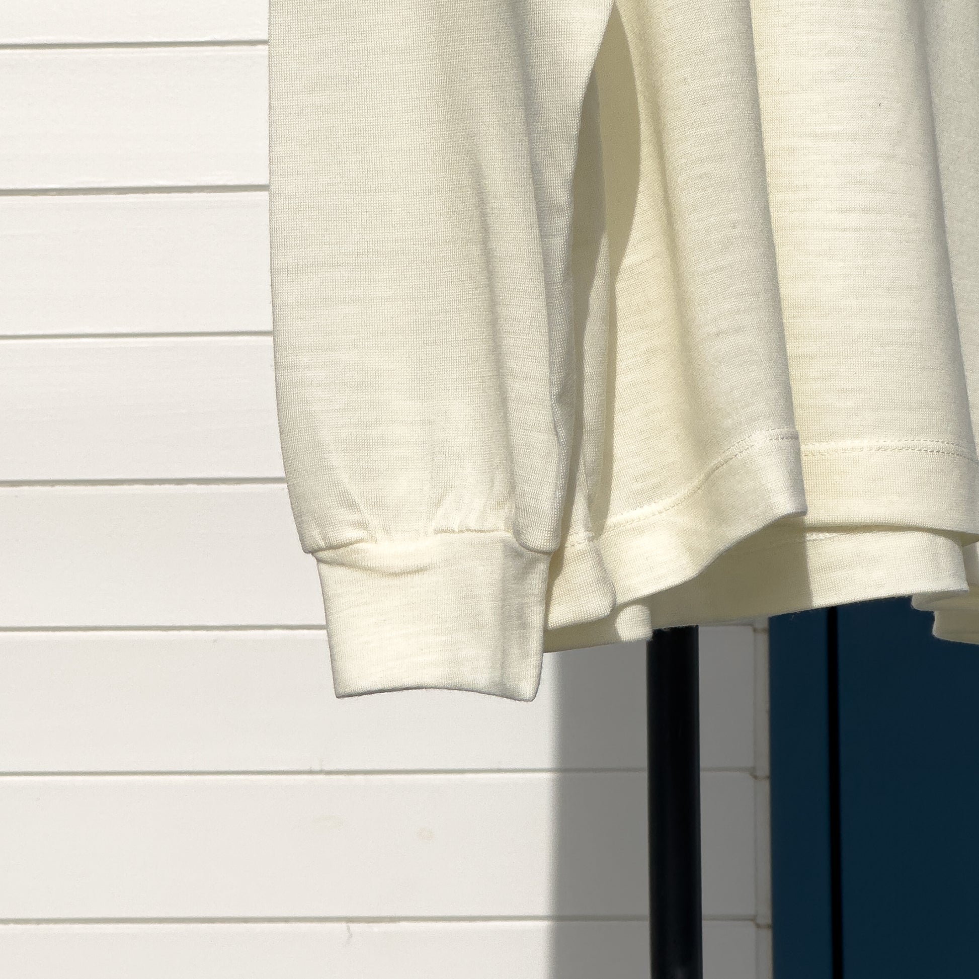 「夏は涼しく、冬は暖かい」というローテーションしやすい素材を使用。これ一枚でも、インナーとしても使える汎用性の高いトップスです。