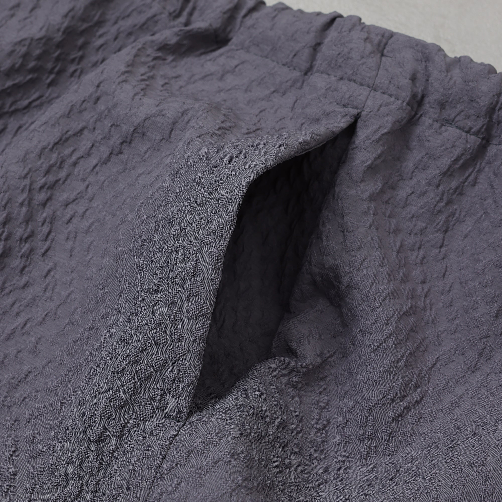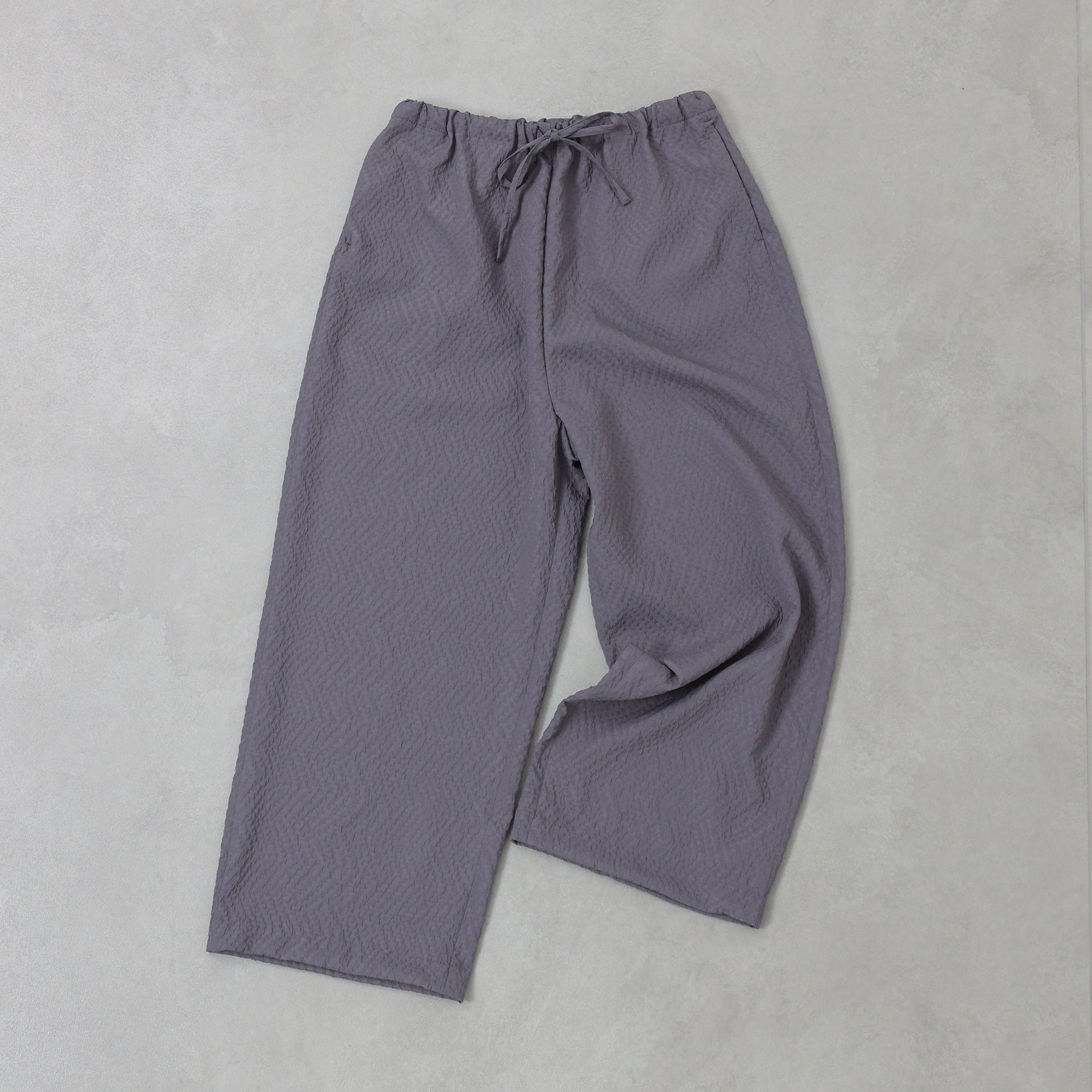 凹凸感のあるジャカード生地が豊かな陰影を描き立体的な表情がシンプルな装いにもモードな存在感を添えるイージーパンツ。