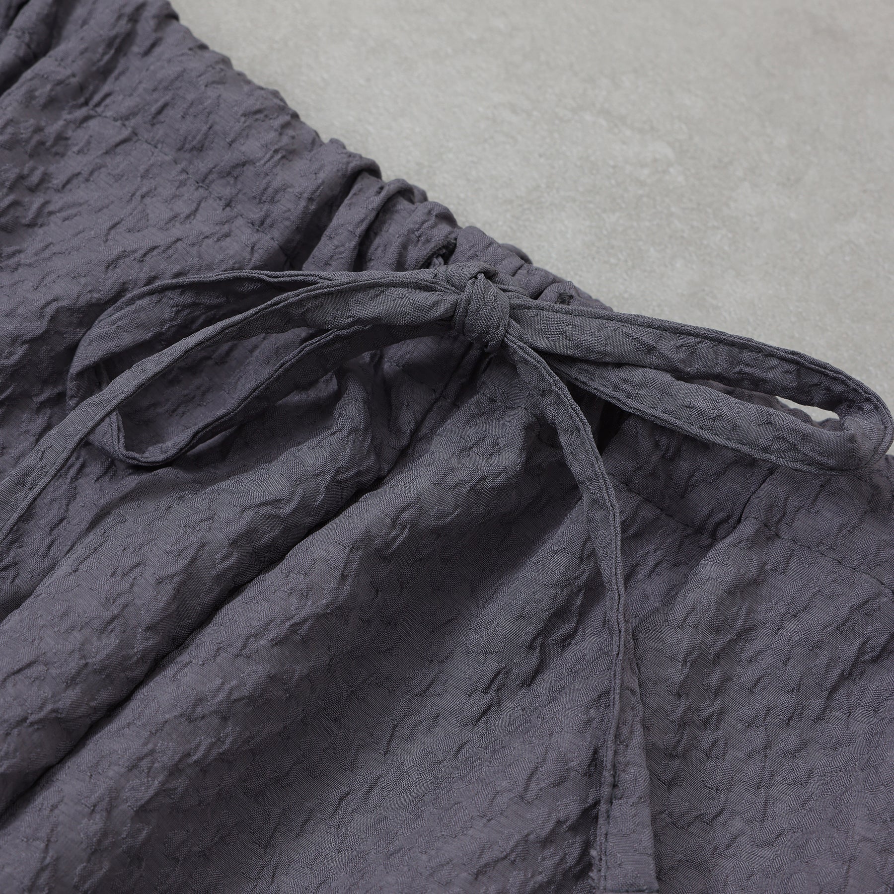 ウエストはゴム仕様+ドローストリングでリラックスした穿き心地でウエストサイズを調整して着用いただけます。