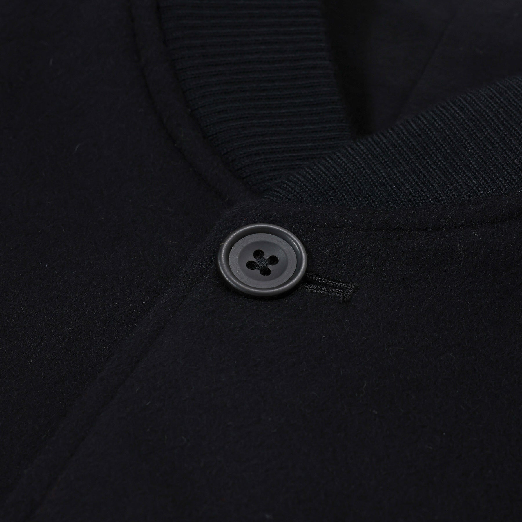 ボタン留め仕様のスタジアムジャケットから着想したアイテムは、ゆったりとした身幅で、袖リブ、裾リブを無くし、前振りした袖や袖口のパターンを工夫することで上品に仕上げました。シャツやパーカーの上からサッと羽織るだけにサマになるノンストレスで滑らかな着心地から日常着として最適です。